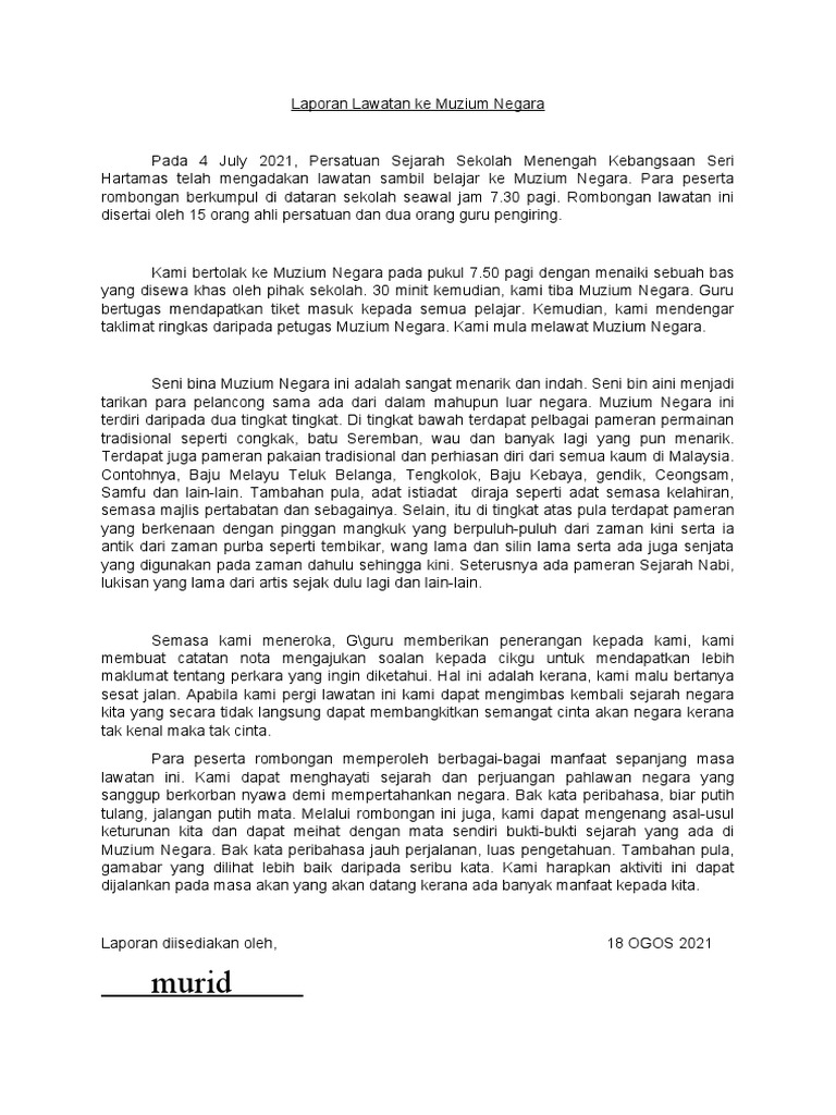 Laporan Lawatan Sambil Belajar Ke Muzium Negara Pdf
